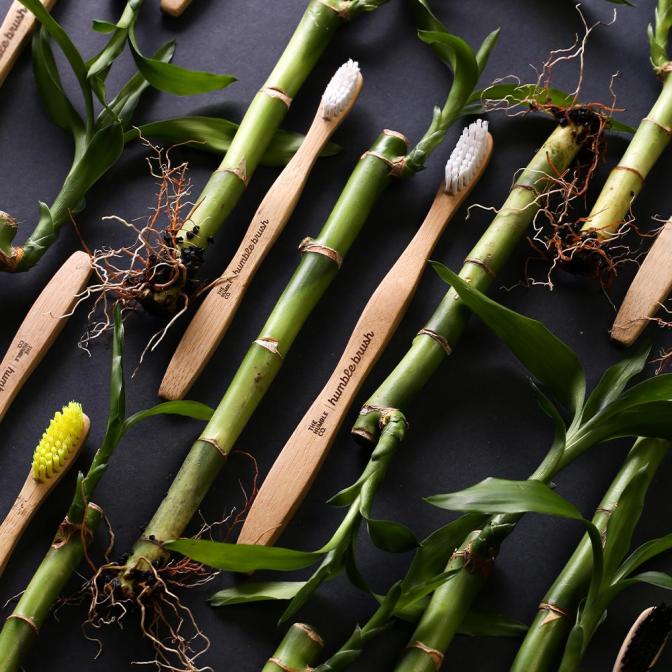 Humble Brush has a handle made from 100% biodegradable, sustainably-grown bamboo. the bristles are made of nylon-6 bristles from Dupont. the packaging is eco-friendly, the box and inside wrapper are made from recycled materials, and can be thrown out with the organic trash.